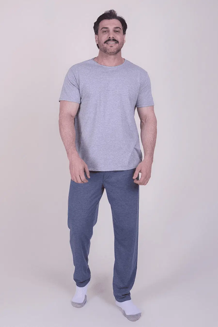Simplicidade e conforto em um conjunto ideal para o dia a dia. O pijama masculino básico confort é confeccionado em malha leve e macia, com blusa de manga curta e calça de modelagem solta. Perfeito para quem busca bem-estar e praticidade nas noites de descanso.